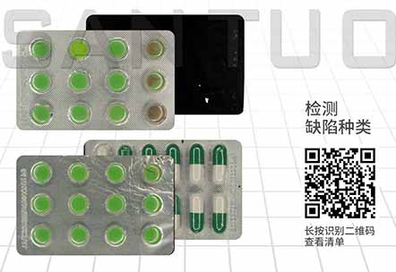 智能檢測:更全面!能有效檢測出:泡罩異物、黑點(diǎn)、破損、PVC變形、PVC黑點(diǎn),PVC折痕、PVC網(wǎng)紋不清、PVC散粉、PVC裁切不齊、字符不清、藥片裂紋、藥片污漬斑塊、藥片缺角、藥片凸起或凹坑等等。